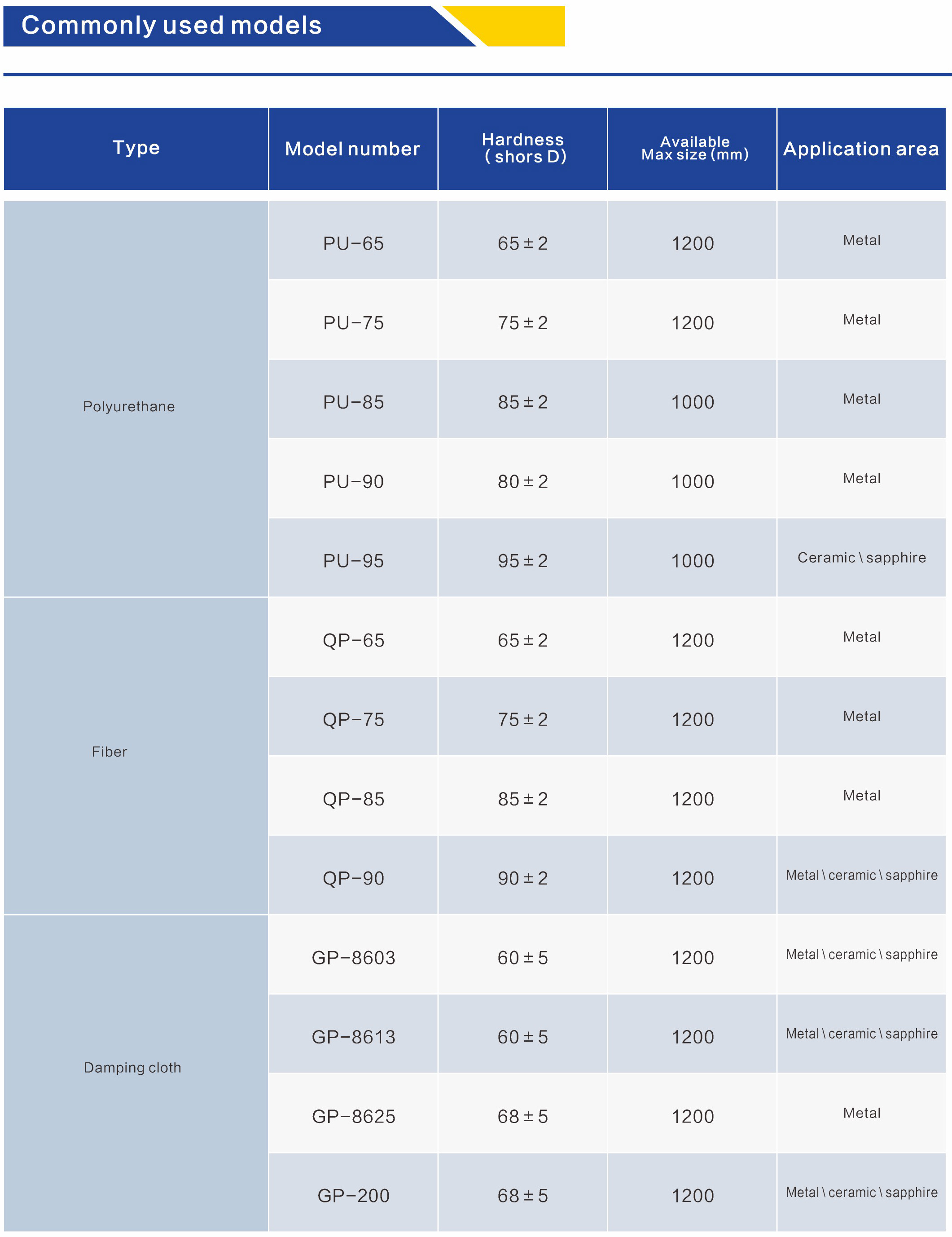 ■ The polishing cloth provided by Sainko is mainly divided into four categories: polyurethane, plush cloth, black flannel cloth and compression cloth. All provide excellent processing effect for polishing a wide range of materials.